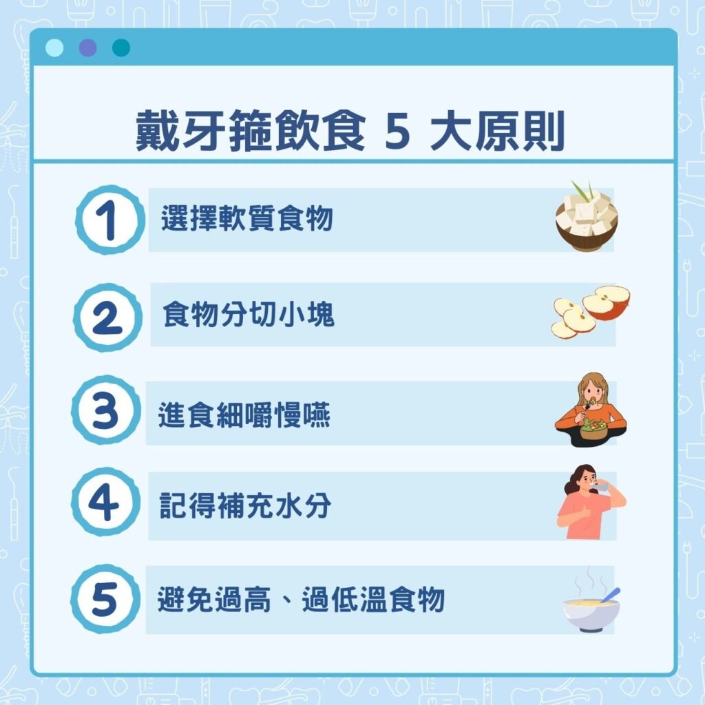 其實配戴牙箍後即時可正常進食,唯在食物選擇上需多加注意。